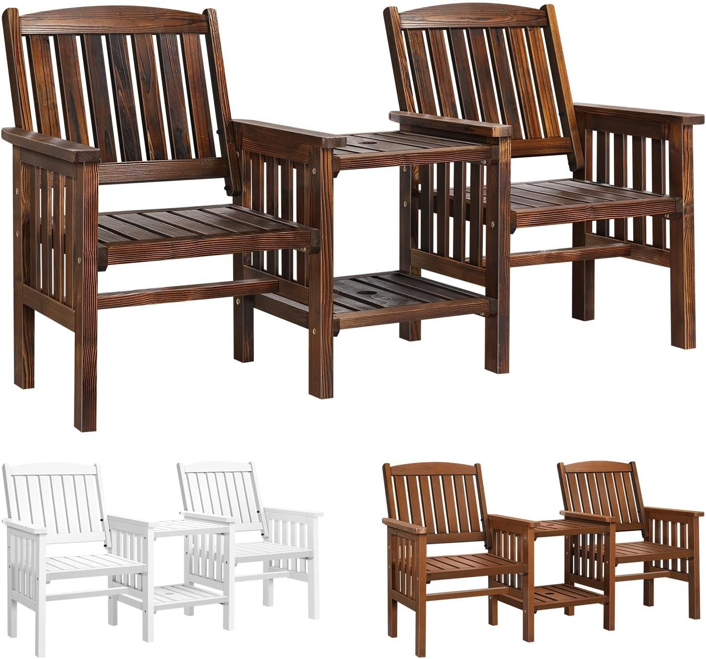 ALFORDSON Wooden Garden Loveseat with Integrated Table, Durable Fir Wood Twin Armchairs for Patio and Balcony, Charcoal